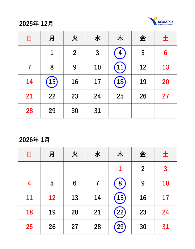 【お知らせ】12月~2月こまつドームでテニスを楽しもう!